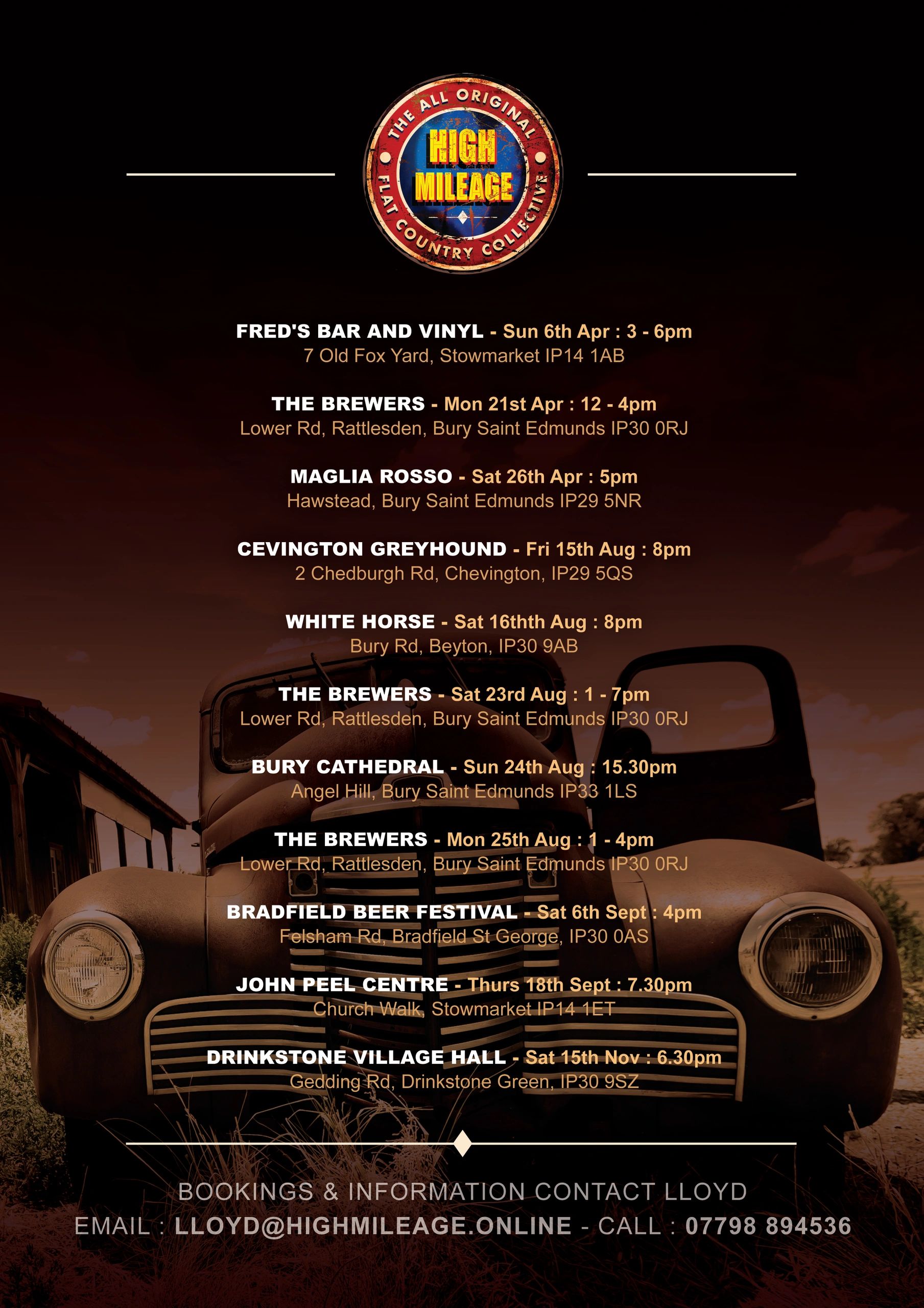 CALL : 01449 736172 EMAIL : lloyd@highmileage.online